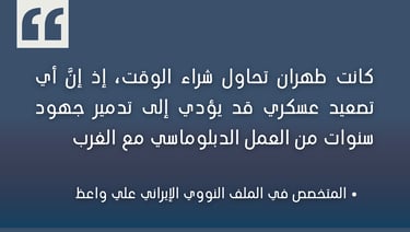 يقول علي واعظ، المحلل في مجموعة الأزمات الدولية والمتخصص في الملف النووي الإيراني: "كانت طهران تحاول شراء الوقت، إذ إنَّ أي تصعيد عسكري قد يؤدي إلى تدمير جهود سنوات من العمل الدبلوماسي مع الغرب". غير أن مقتل حسن نصر الله، الذي يعد الحليف الأهم لإيران في المنطقة، أدى إلى تزايد التوترات بشكل كبير وأصبح من الواضح أن إيران ستواجه تصعيدًا غير مسبوق. وأي مبادرة دبلوماسية أصبحت بلا معنى.