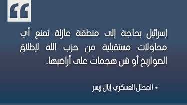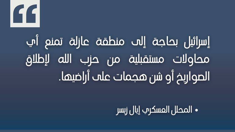 يقول المحلل العسكري إيال زيسر: "إسرائيل بحاجة إلى منطقة عازلة تمنع أي محاولات مستقبلية من حزب الله لإطلاق الصواريخ أو شن هجمات على أراضيها."
