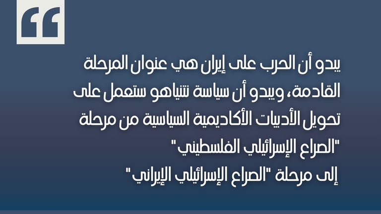 في كل الأحوال، يبدو أن الحرب على إيران هي عنوان المرحلة القادمة، ويبدو أن سياسة نتنياهو ستعمل على تحويل الأدبيات الأكاديمية السياسية من مرحلة "الصراع الإسرائيلي الفلسطيني" إلى مرحلة "الصراع الإسرائيلي الإيراني". ويبقى السؤال الكبير حول مدى إمكانيَّة تحقيق نتنياهو هذا السيناريو المعقد، ومدى تأثيره على الإقليم. وسواء نجح أو فشل في ذلك، فالأكيد أنّه سيجرّ العالم إلى حرب شاملة جديدة.