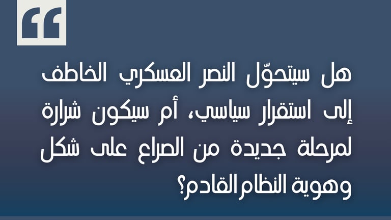 ما حدث يطرح تساؤلات عميقة حول مستقبل سوريا: كيف ستدار المرحلة الانتقالية؟ ما مصير الأقليات؟ كيف ستتوازن مصالح القوى الخارجية؟ أسيتحوّل النصر العسكري الخاطف إلى استقرار سياسي، أم سيكون شرارة لمرحلة جديدة من الصراع على شكل وهوية النظام القادم؟