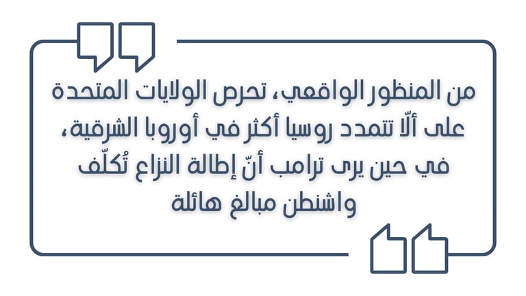 من المنظور الواقعي، تحرص الولايات المتحدة على ألّا تتمدد روسيا أكثر في أوروبا الشرقية، في حين يرى ترامب أنّ إطالة النزاع تُكلّف واشنطن مبالغ هائلة وتُشتّت تركيزها عن منافسة الصين في آسيا. بناءً عليه، قد يعمد إلى طرح سيناريو “تسوية لا خاسر ولا منتصر” (No-Win No-Lose Settlement) مع بعض التأطير القانوني الدولي لتأمين حدود أوكرانيا الشرقية، لكنّ مدى قبول موسكو وكييف بذلك يبقى سؤالًا مفتوحًا في ظلّ حسابات ميدانية وعوامل محلية متطورة.